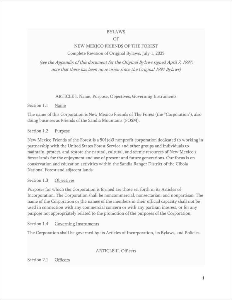 FOSM operates in accordance with bylaws and associated policies approved by the membership. These documents were updated in 2025. Click on an image at right to access the full document.