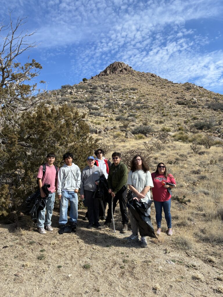 February 11, 2026 – FOSM partnered with Menaul School to clean up trash and locate graffiti in the Foothills trail system south of the Embudo Trailhead as a part of the school’s annual “Mission Week” during which students participate outside the classroom in a community service project. The activity was organized by Lou Romero, FOSM Volunteer Youth Programs Coordinator, and Hannah Scanlon of the Menaul faculty. Lou’s detailed after-action report can be found at right.
