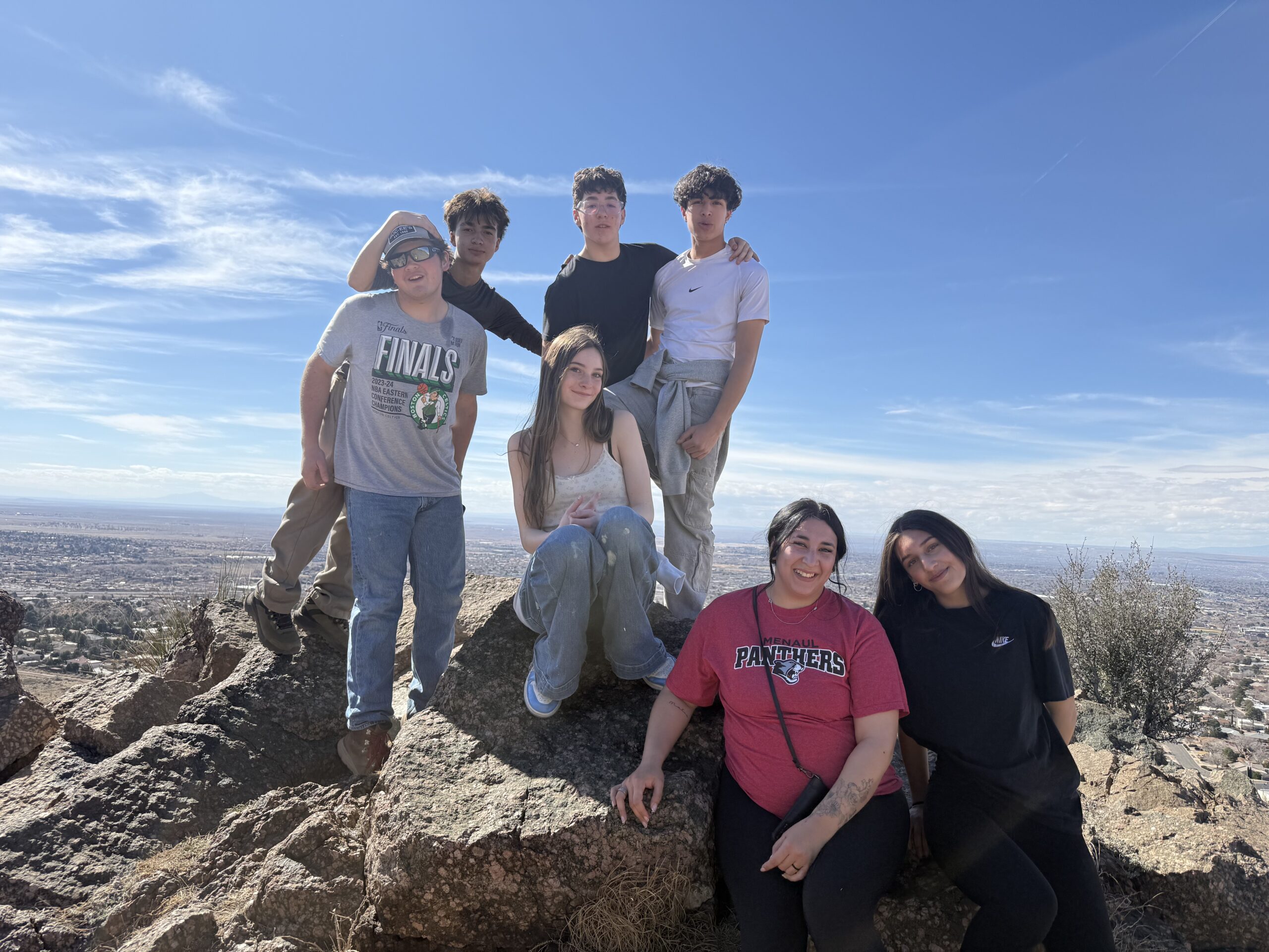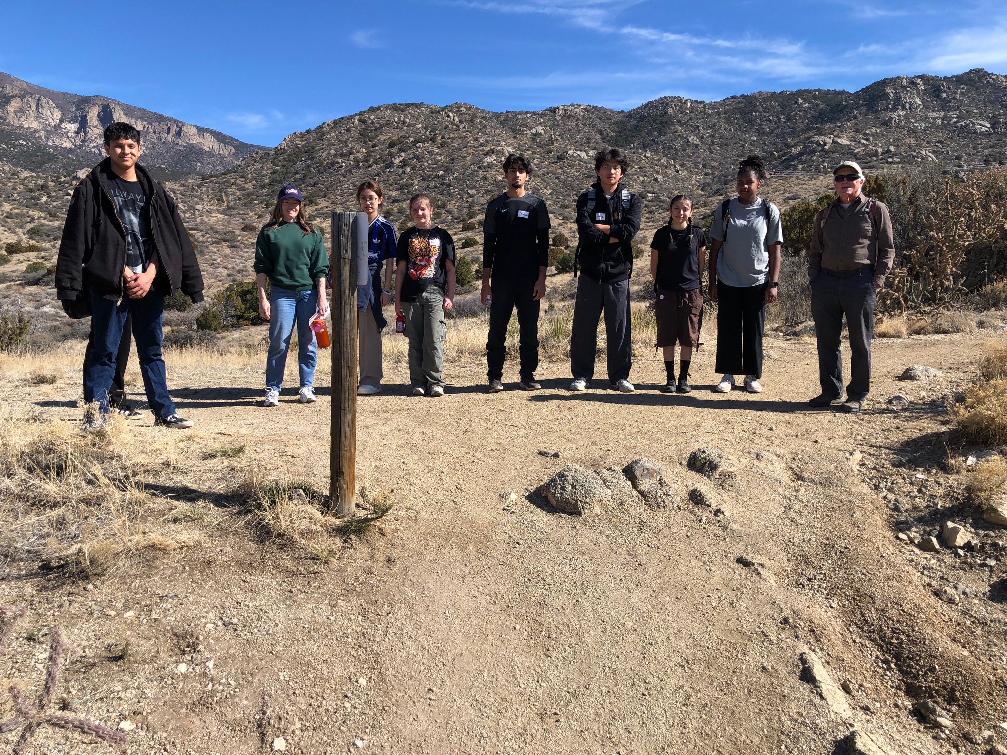 - Coyotes – 8 students with faculty member Chelsea Christopher and driver Nina Denisova accompanied by FOSM volunteers Mike Madden and Sim Cook traversing trails starting at Embudo Trailhead and ending at Copper Trailhead.