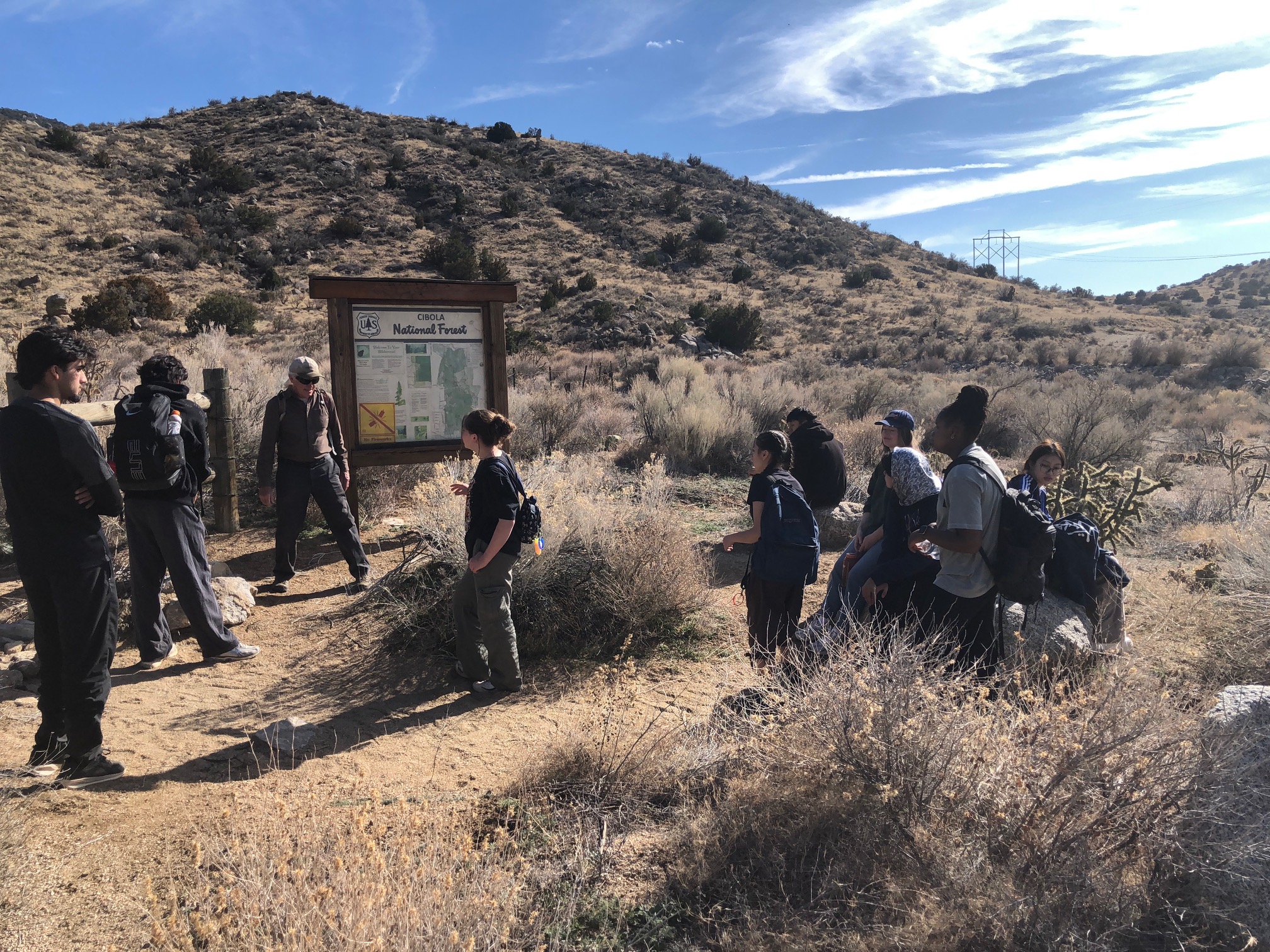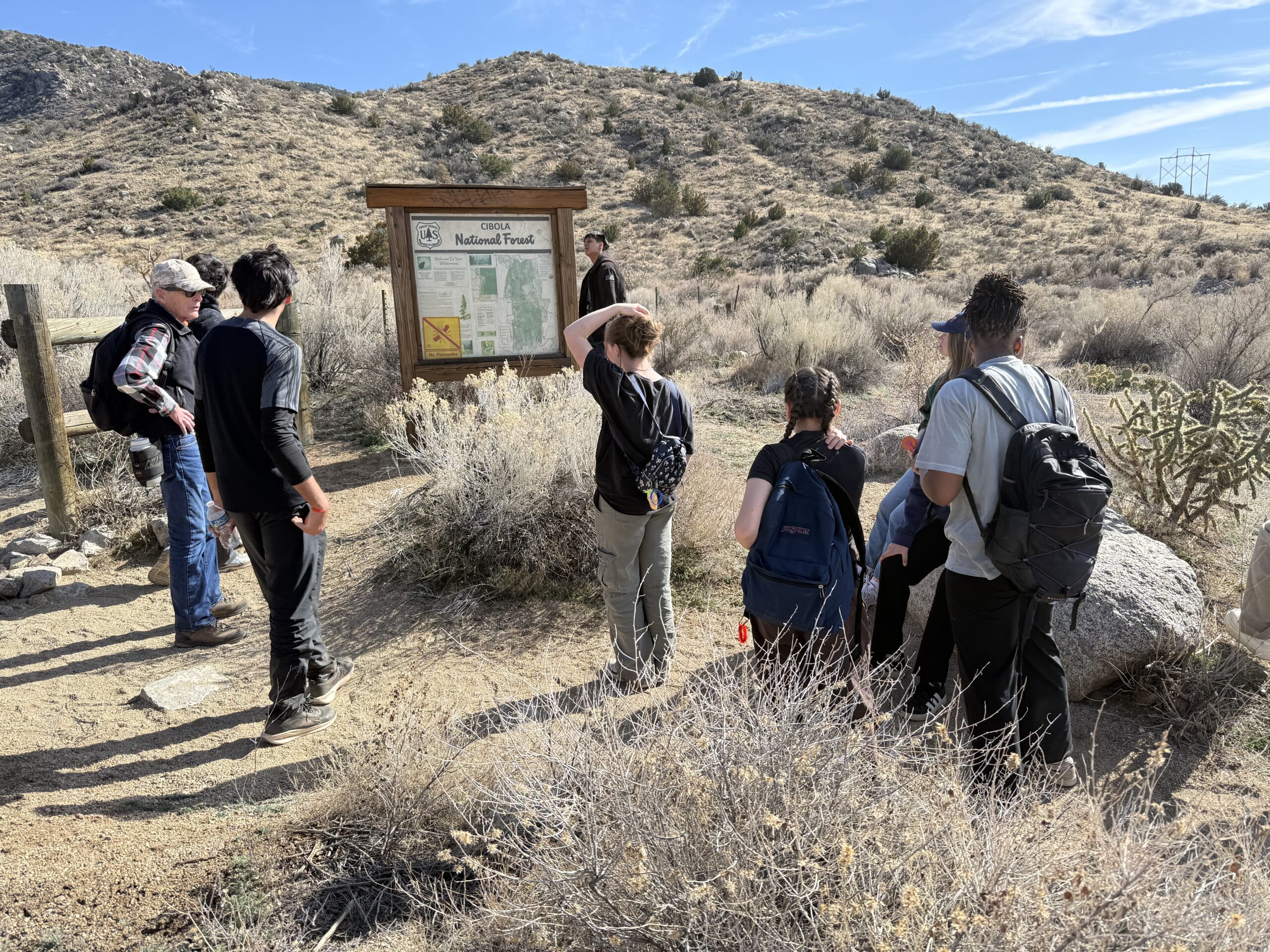 - Hawks – 10 students and driver Nicholas Maldonado accompanied by FOSM volunteer Sam Beard traversing trials south of Copper Trailhead.