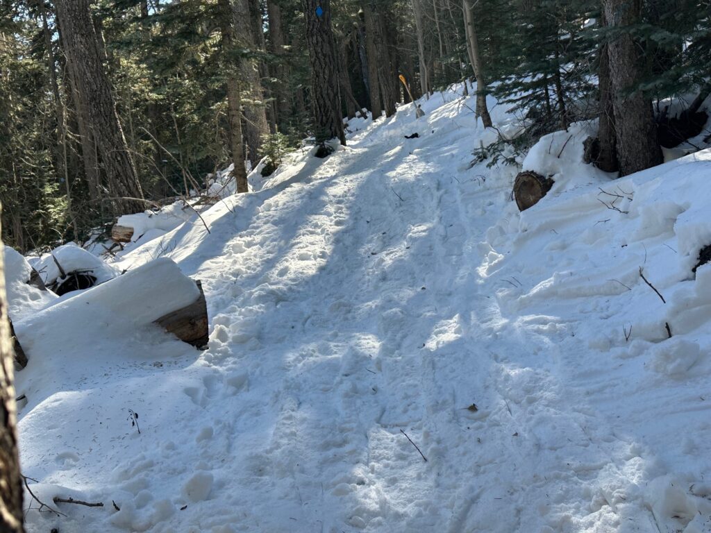December 10, 2025 – Steve Roholt reported: I spent some time shoveling snow and packing with snowshoes with the goal to level out the Upper Switchback Trail. I’m in the process of discussing this issue with Sam. This trail is adopted by the New Mexico Cross Country Ski club and is used for the snowshoe classic. It’s a non-wilderness, multiuser, all-season, official FS trail.