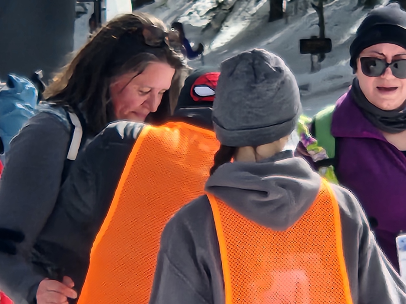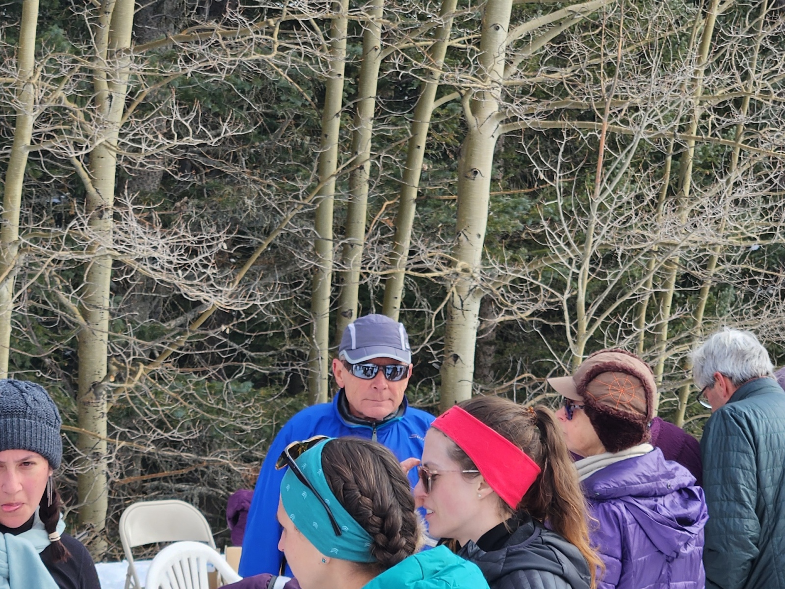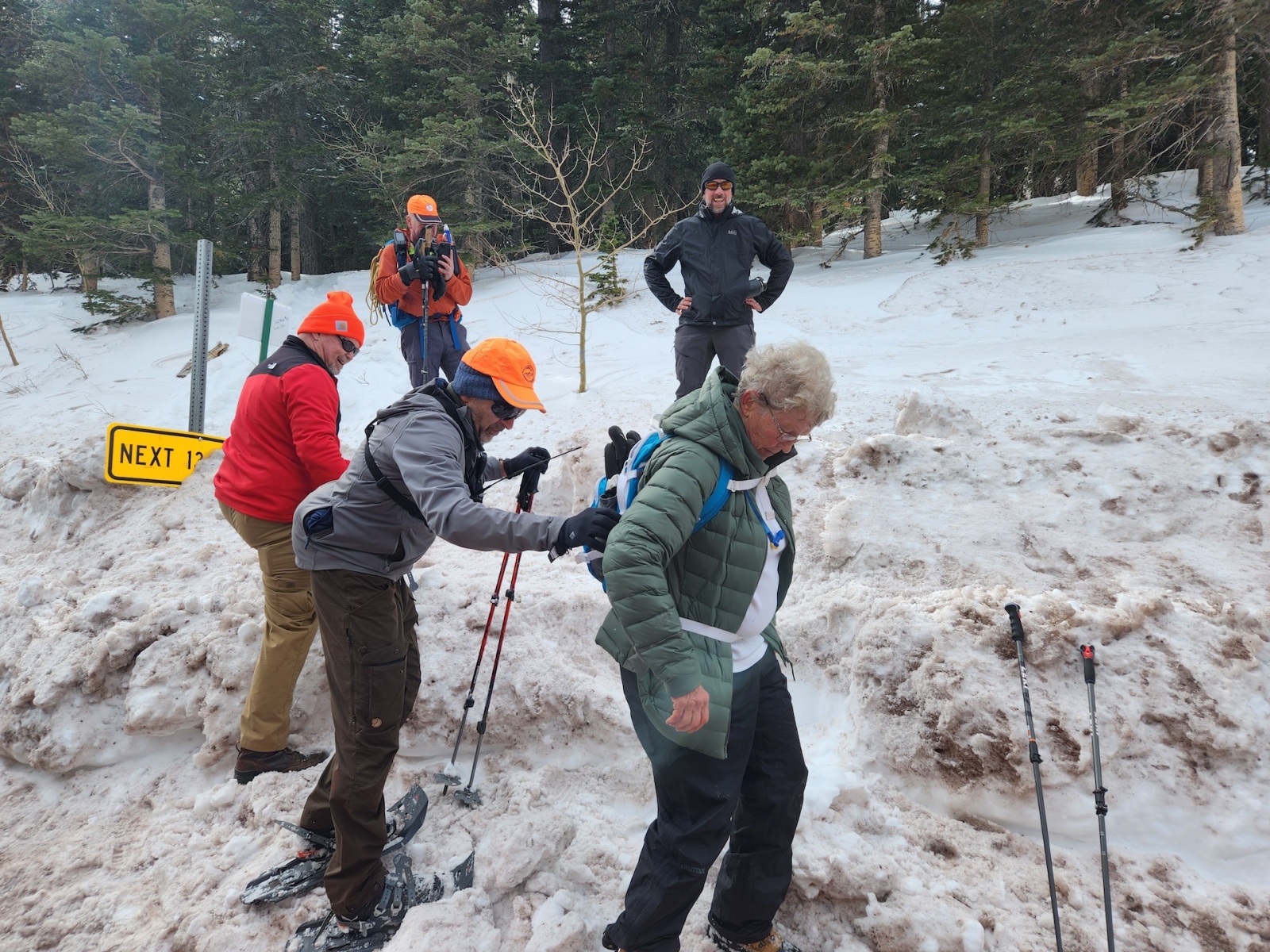 Thanks to FOSM members Silke Bletzer, Ray Iturralde, and Cliff Giles for the photos below. One shows former race director Lou Romero with a vintage pair of snowshoes that he used early in his Forest Service career. Another shows Lou with his niece who was atop Mt. Kilimanjaro the week before. One photo shows the four men who have served as race director since the inception of the Snowshoe Classic in 2001.