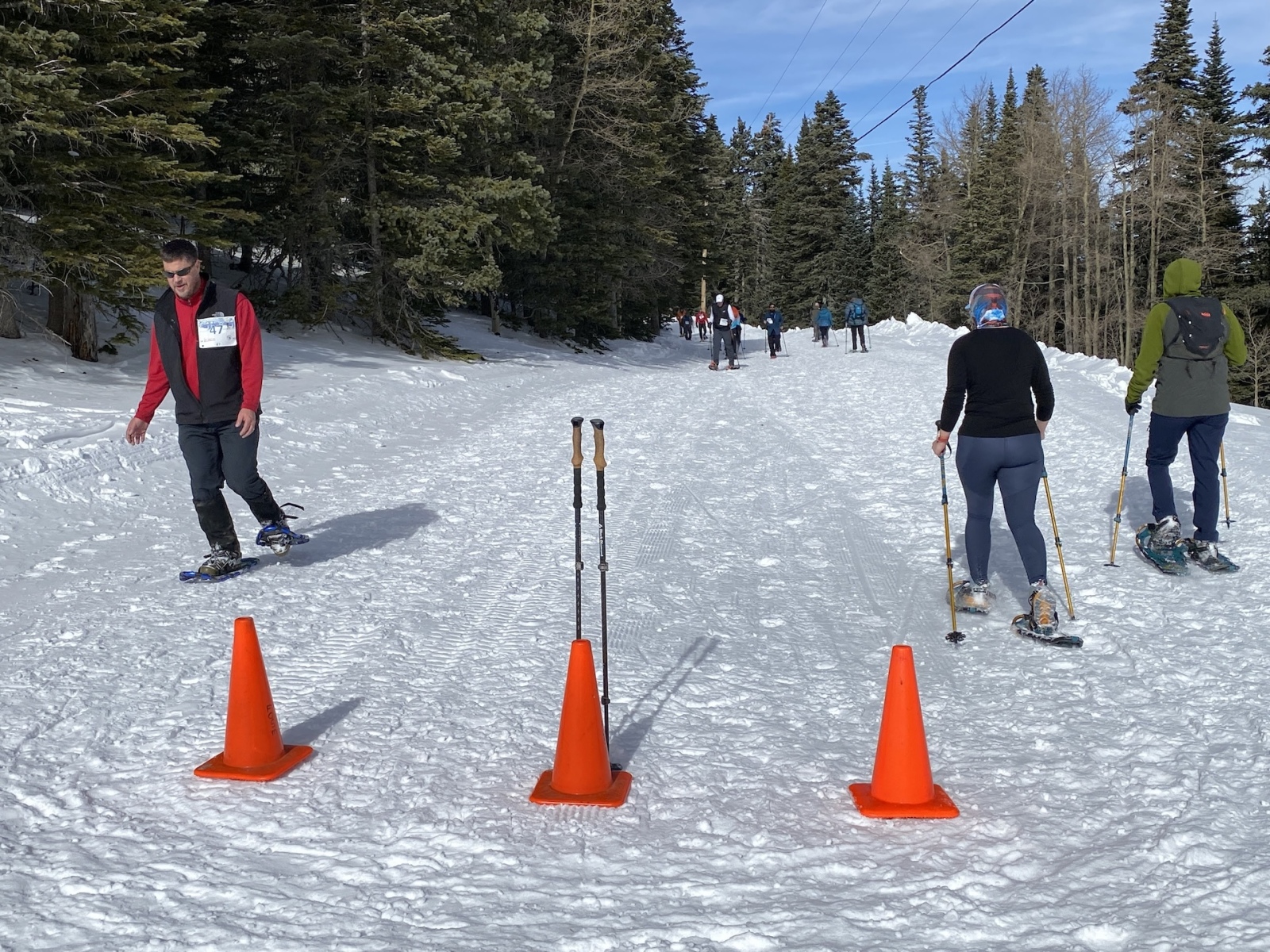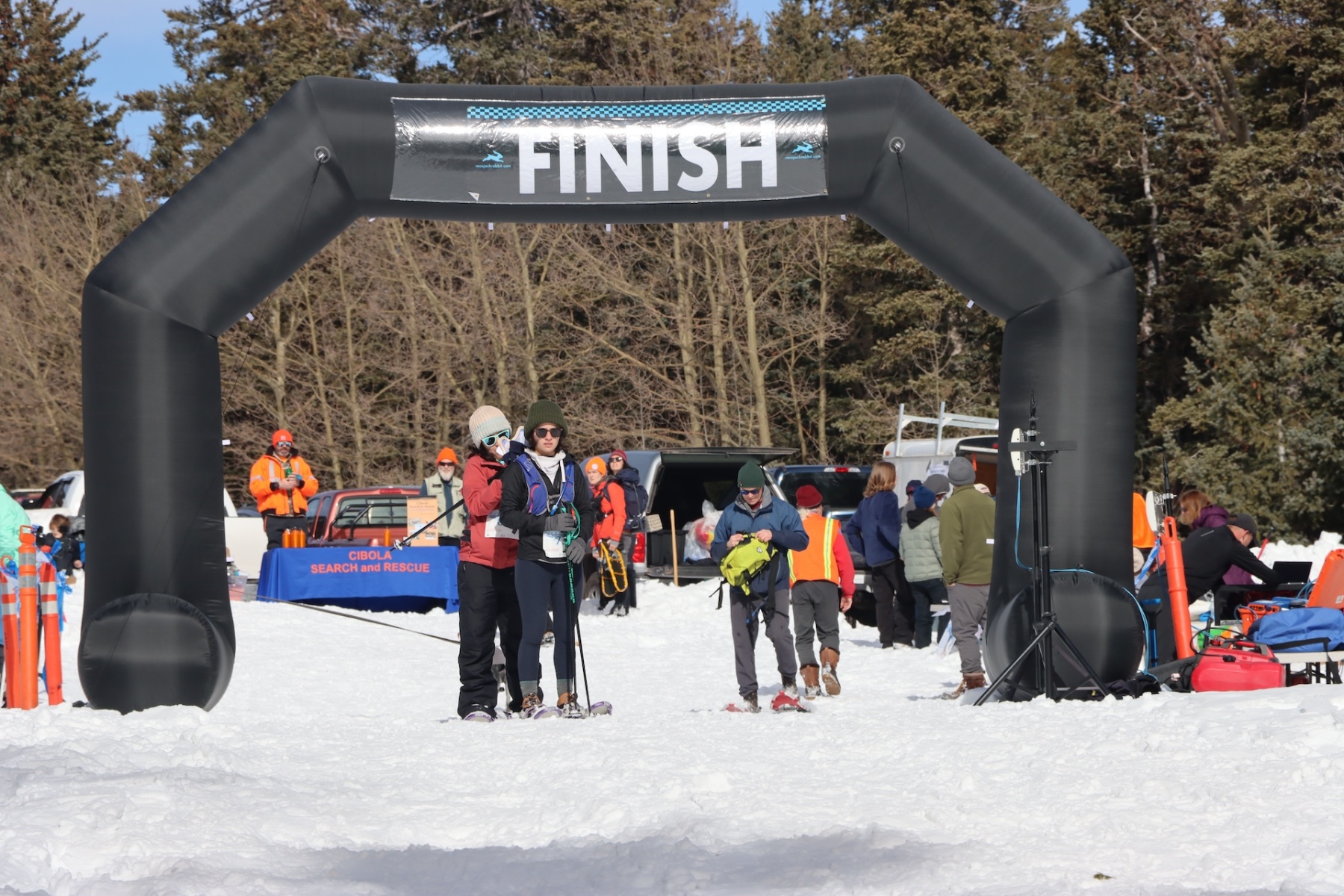 Cibola Search & Rescue volunteers played a major role in this and the previous Snowshoe Classic event by being available to provide first-aid assistance throughout the course, and their services were called upon Saturday to help one exhausted racer off the course.