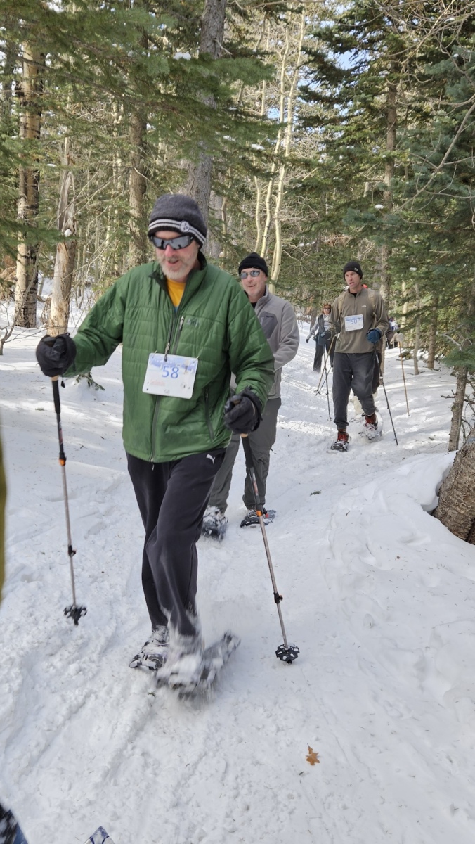 FOSM members who planned and organized the event were: Mike Madden, FOSM President and Snowshoe Race Director; Joe Beman, FOSM member; Jeff Young, FOSM member; Jamey Browning, FOSM board member; Silke Bletzer, FOSM Secretary. Jamey led a team of 13 course marshals stationed througout the course to keep racers on the right trail. They teamed with the Monday trail maintenance crew to sweep the course on the Monday before the event. A complete list of volunteers is available here.
