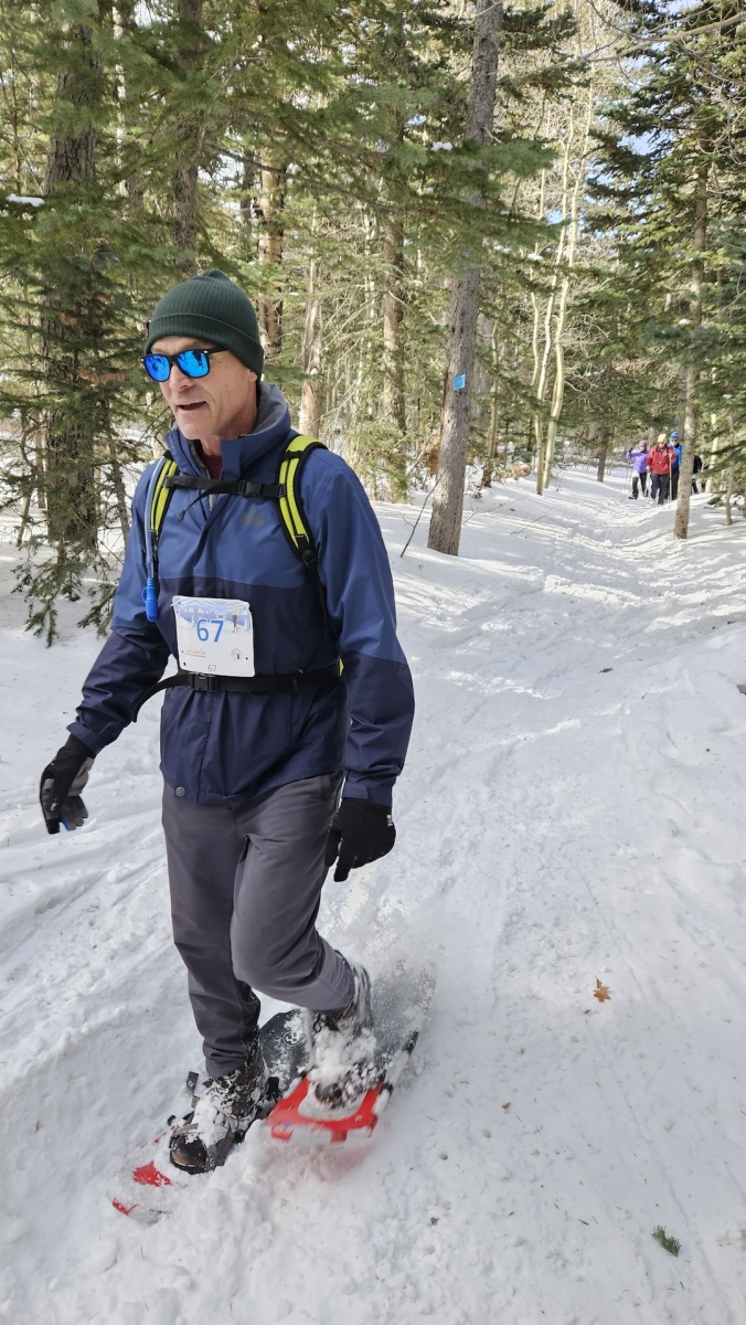 FOSM members who planned and organized the event were: Mike Madden, FOSM President and Snowshoe Race Director; Joe Beman, FOSM member; Jeff Young, FOSM member; Jamey Browning, FOSM board member; Silke Bletzer, FOSM Secretary. Jamey led a team of 13 course marshals stationed througout the course to keep racers on the right trail. They teamed with the Monday trail maintenance crew to sweep the course on the Monday before the event. A complete list of volunteers is available here.