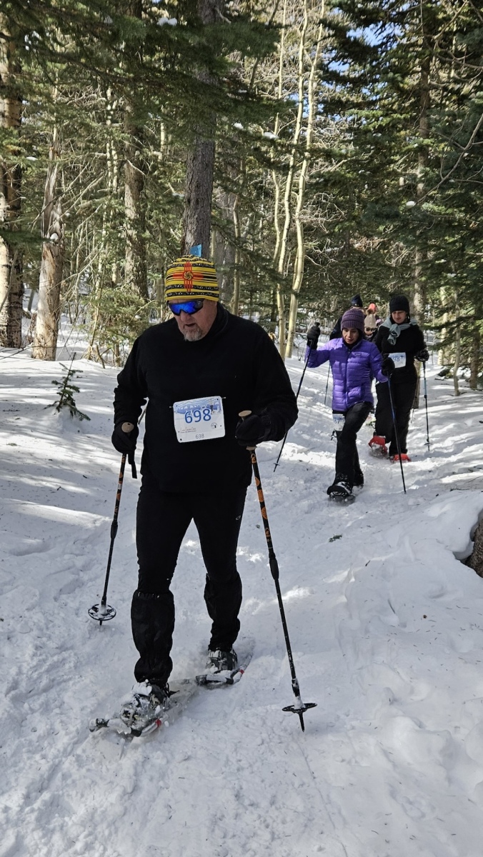Cibola Search & Rescue volunteers played a major role in this and the previous Snowshoe Classic event by being available to provide first-aid assistance throughout the course, and their services were called upon Saturday to help one exhausted racer off the course.