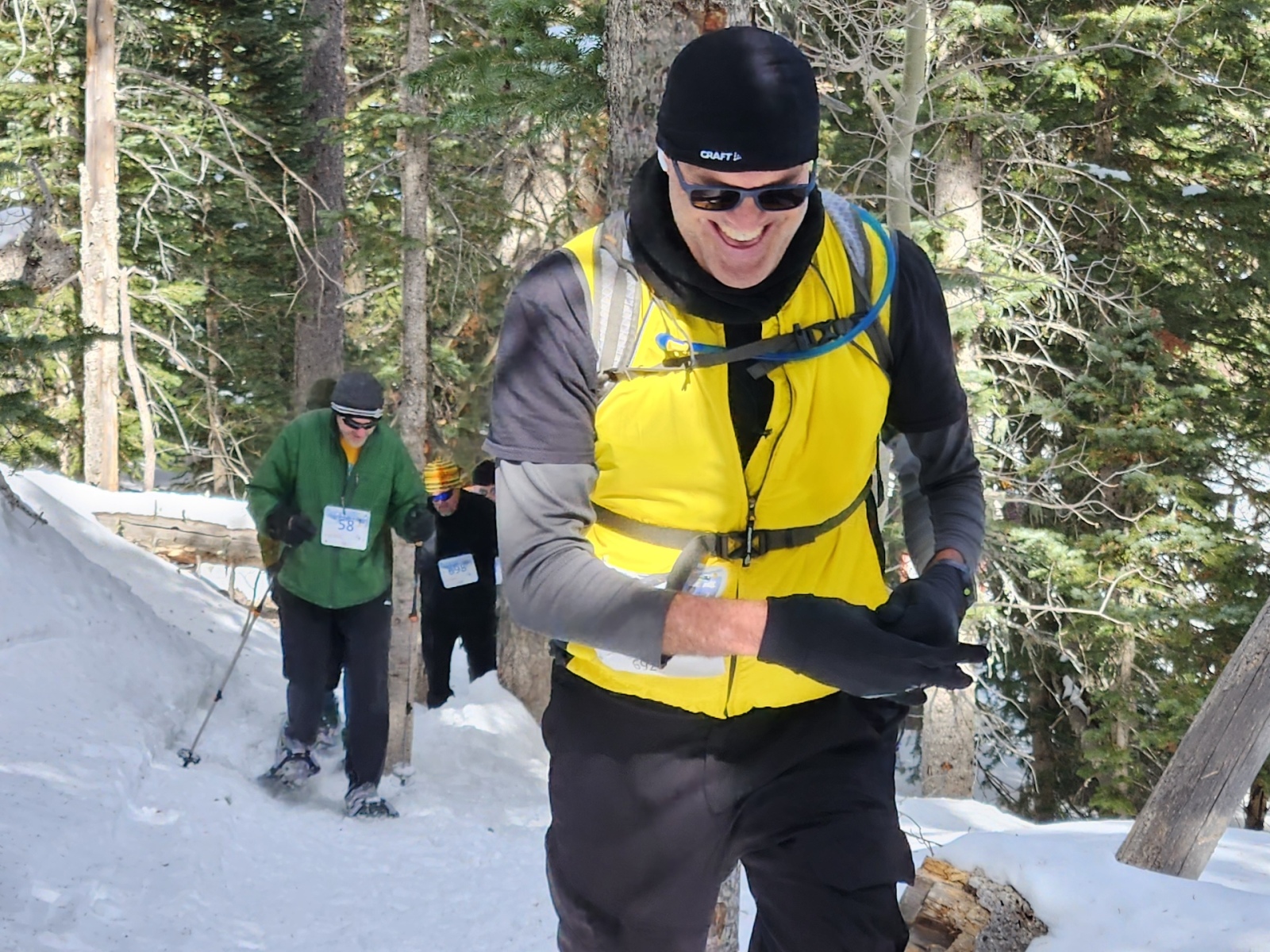 Cibola Search & Rescue volunteers played a major role in this and the previous Snowshoe Classic event by being available to provide first-aid assistance throughout the course, and their services were called upon Saturday to help one exhausted racer off the course.