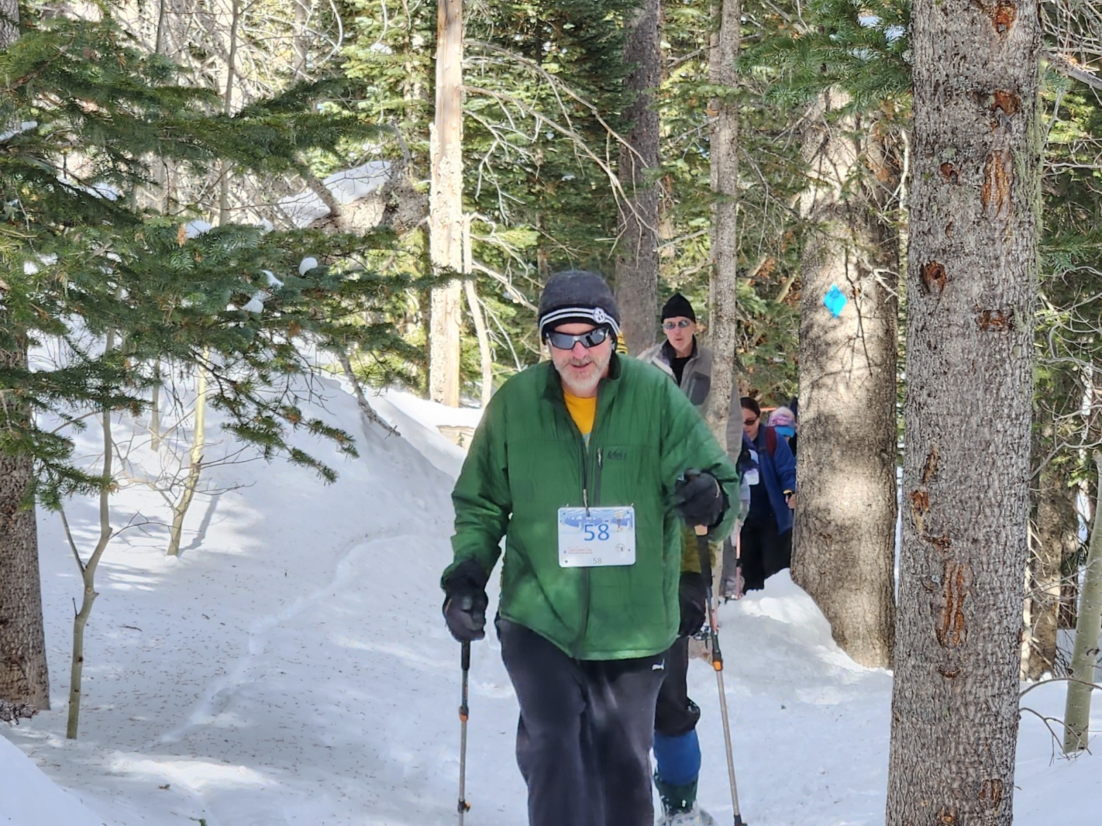FOSM members who planned and organized the event were: Mike Madden, FOSM President and Snowshoe Race Director; Joe Beman, FOSM member; Jeff Young, FOSM member; Jamey Browning, FOSM board member; Silke Bletzer, FOSM Secretary. Jamey led a team of 13 course marshals stationed througout the course to keep racers on the right trail. They teamed with the Monday trail maintenance crew to sweep the course on the Monday before the event. A complete list of volunteers is available here.