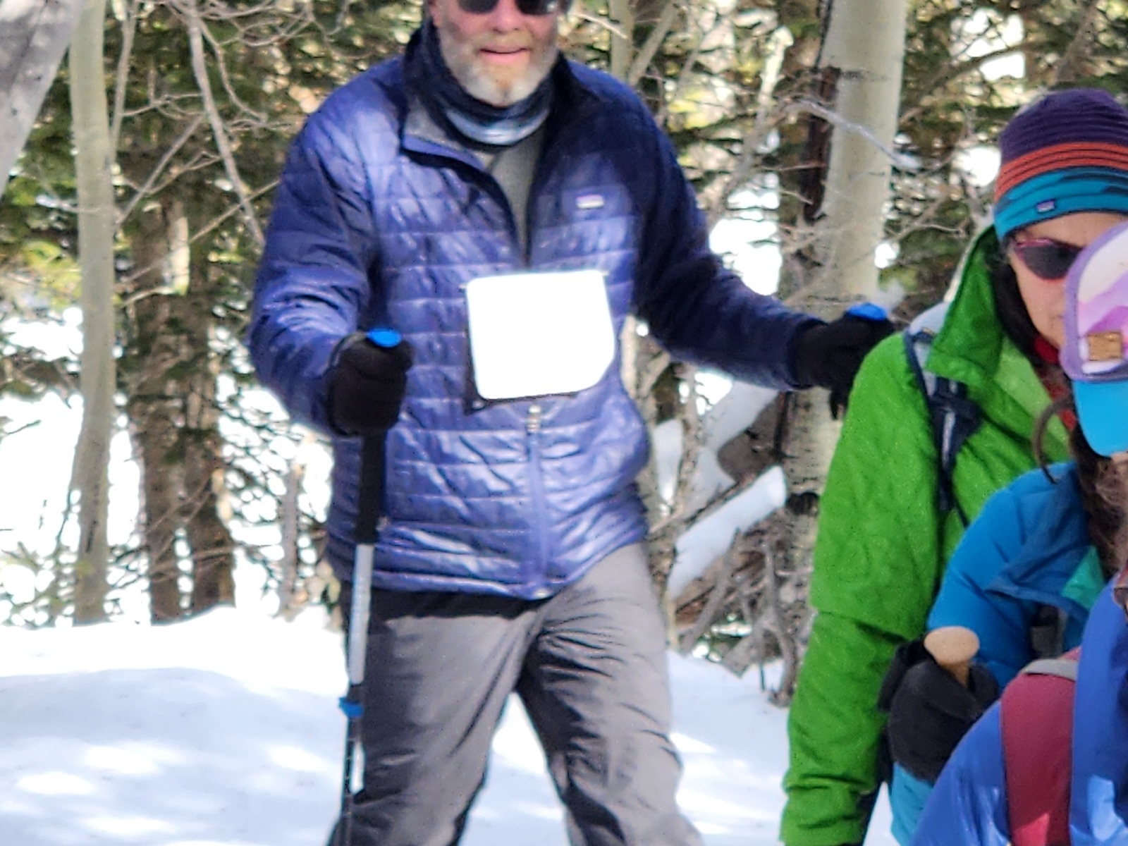 Thanks to FOSM members Silke Bletzer, Ray Iturralde, and Cliff Giles for the photos below. One shows former race director Lou Romero with a vintage pair of snowshoes that he used early in his Forest Service career. Another shows Lou with his niece who was atop Mt. Kilimanjaro the week before. One photo shows the four men who have served as race director since the inception of the Snowshoe Classic in 2001.